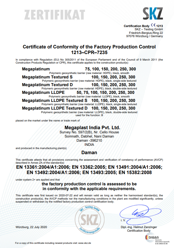 Chứng nhận màng chống thấm HDPE Mega Plast đạt tiêu chuẩn quốc tế