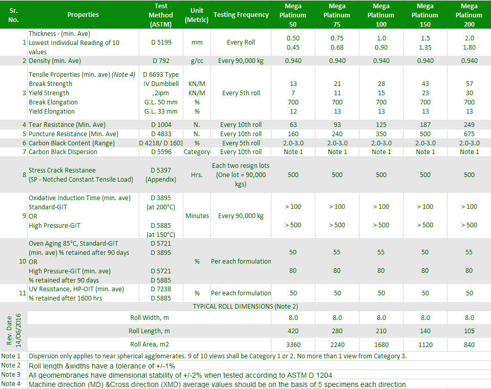Thông tin kỹ thuật màng chống thấm HDPE Mega Plast